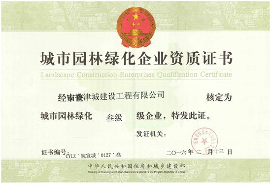 近日,我公司取得了城市園林綠化企業三級資質。