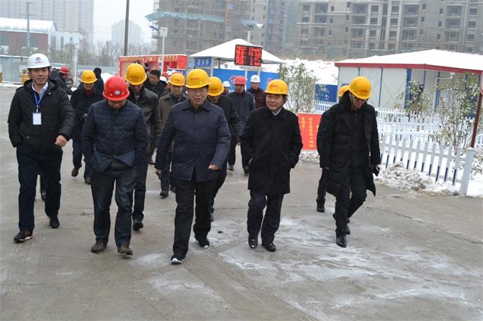 125日上午,大雪紛飛,寒風凜冽,宣城市張冬云市長和市建管局領導一行來到我公司承建的美都玉府二期項目部檢查指導工作,實地檢查面對極寒天氣的應急措施和安全生產工作情況,董事長鄔本水先生及公司有關領導陪同調研。