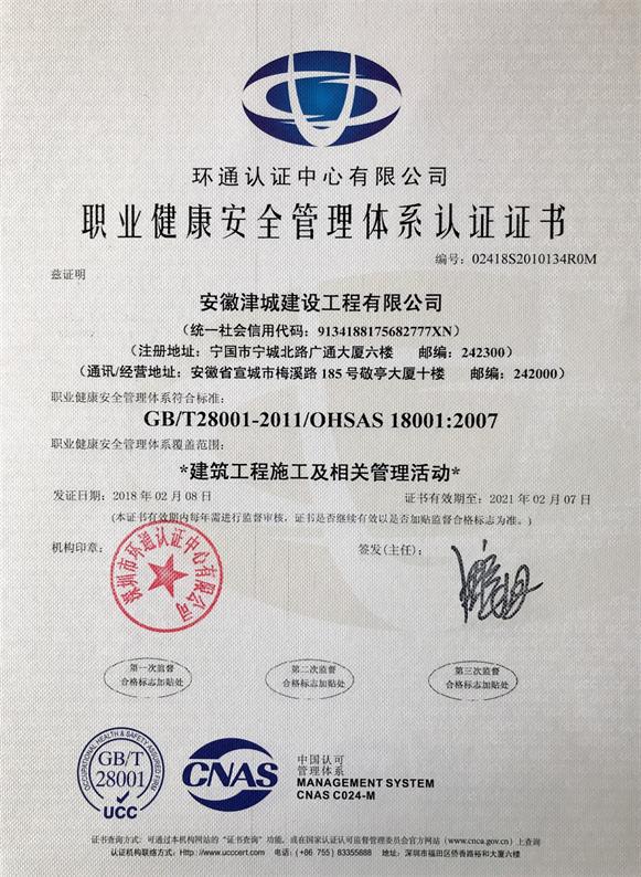 經(jīng)過專家組的認(rèn)真審核,我公司各項審核項目均達到環(huán)境管理體系認(rèn)證和職業(yè)健康安全管理體系認(rèn)證的規(guī)定標(biāo)準(zhǔn),順利通過了認(rèn)證審核,并于2018年2月8日獲得管理體系證書。
