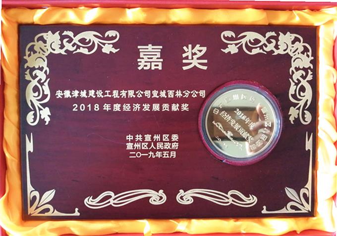 6月3日,董事長鄔本水代表公司參加了由中共宣州區委,宣州區人民政府舉辦的2018年度宣州區經濟突出貢獻企業表彰大會,安徽津城建設工程有限公司宣城西林分公司榮獲經濟發展貢獻獎。