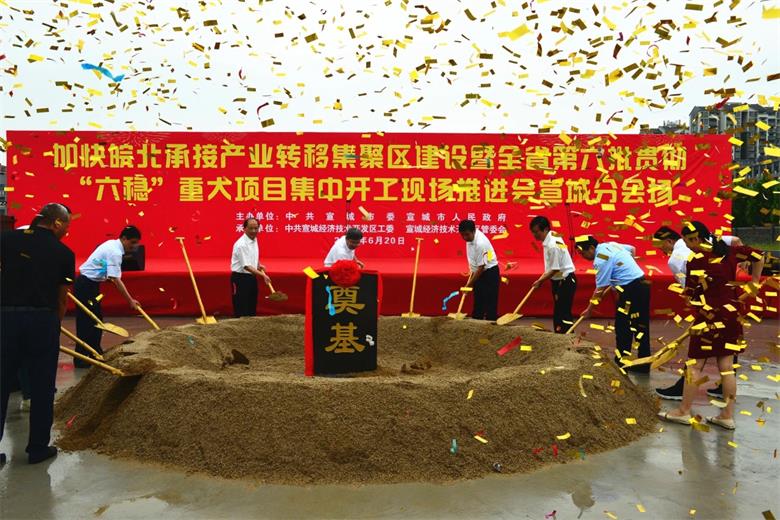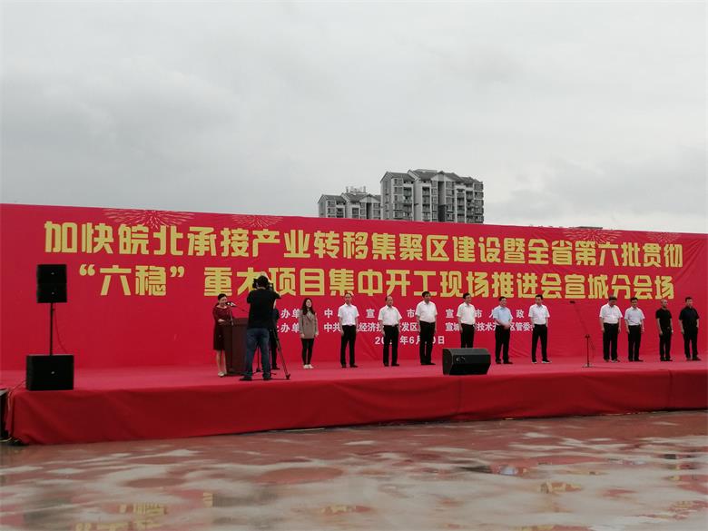 6月20日上午,“全省加快皖北承接產(chǎn)業(yè)轉(zhuǎn)移集聚區(qū)建設(shè)暨全省第六批貫徹“六穩(wěn)”重大項目集中開工現(xiàn)場推進會宣城分會場活動”在宣城市開發(fā)區(qū)宇航智能制造產(chǎn)業(yè)基地舉行,市委書記陶方啟市長孔曉宏、市政府主要領(lǐng)導(dǎo)班子及經(jīng)開區(qū)管委會一行領(lǐng)導(dǎo)出席活動